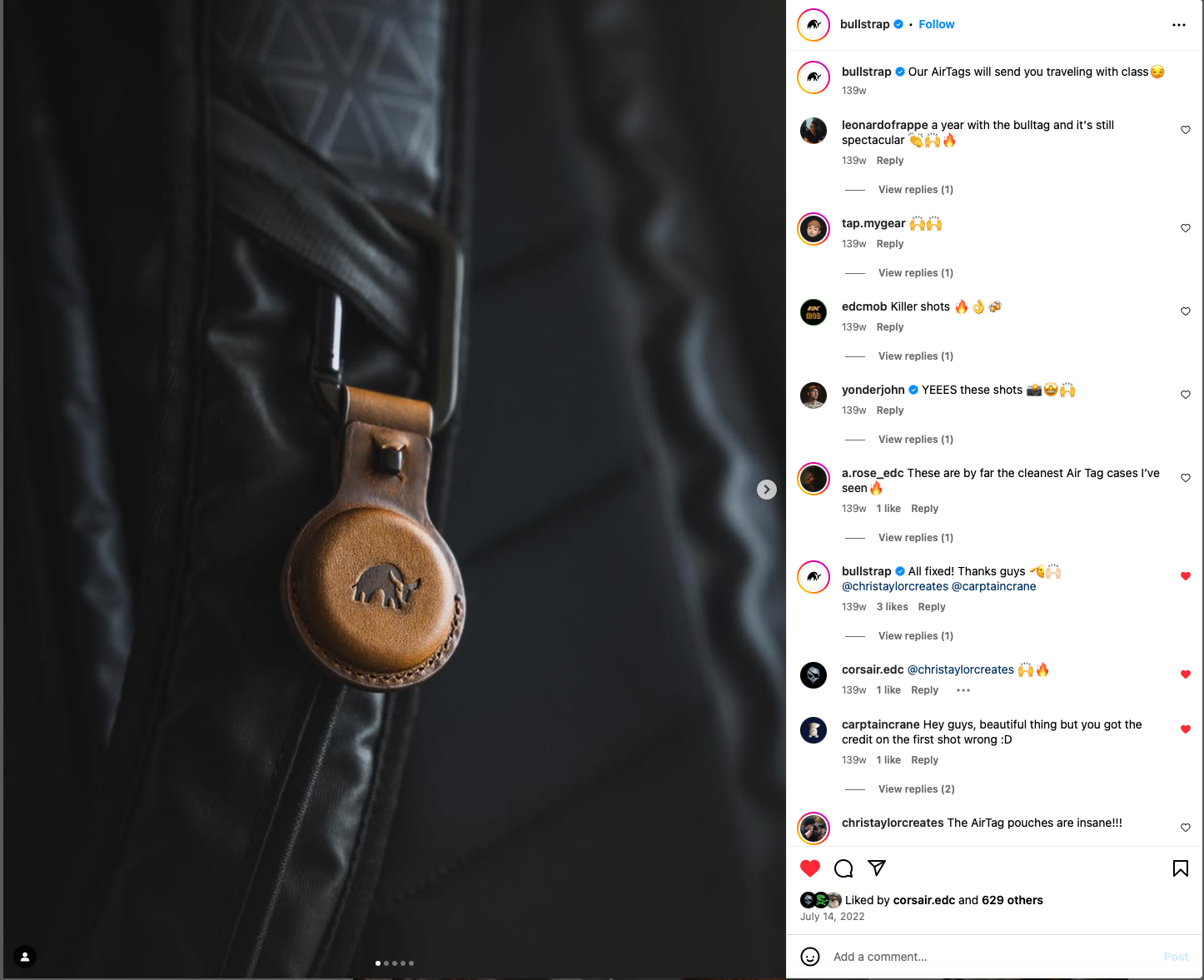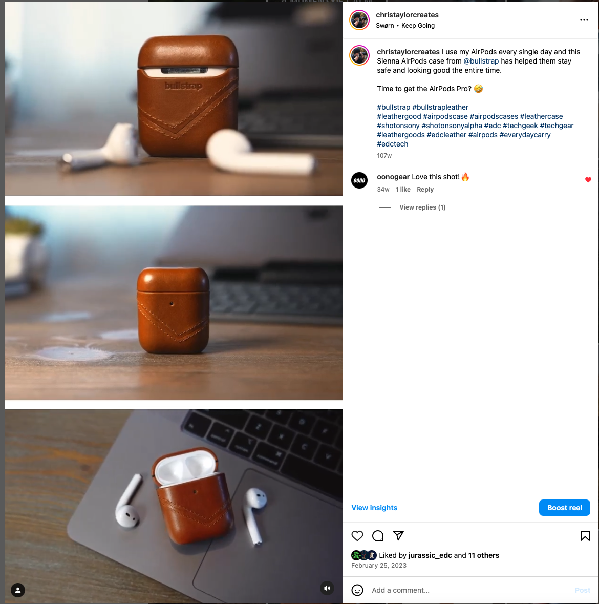 Bullstrap is an American Leather goods company that focuses on high-quality cell-phone / electronic cases along with bags and other leather goods. Bullstrap reached out for a project where the objective was to create fresh, lifestyle + product and social ad directed imagery AND ad reels that were used to primarily for social media content and for possible website and newsletter content.