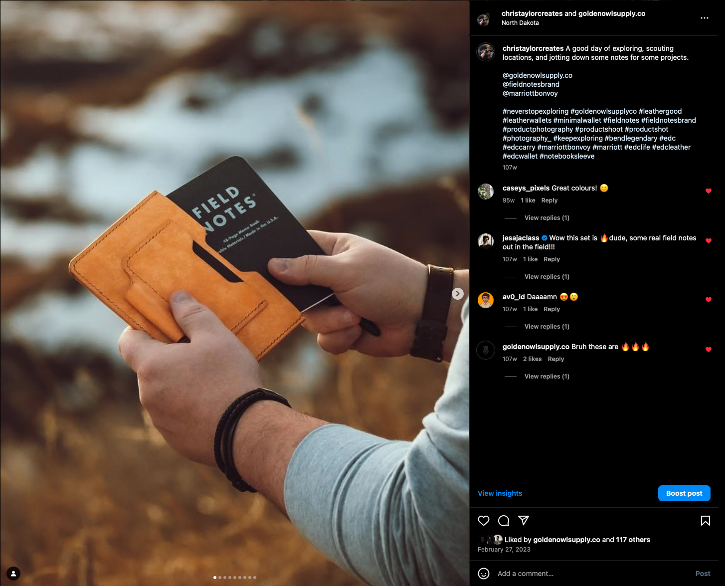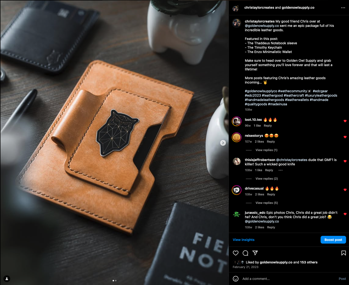 GOLDENOWL SUPPLY is an American company that focuses on the highest quality leather wallets, edc trays, belts, and key chains. Working on multiple projects with Goldenowl Supply, each project has had the goal of creating fresh, product focused imagery used primarily for social media content and for possible website and newsletter content.