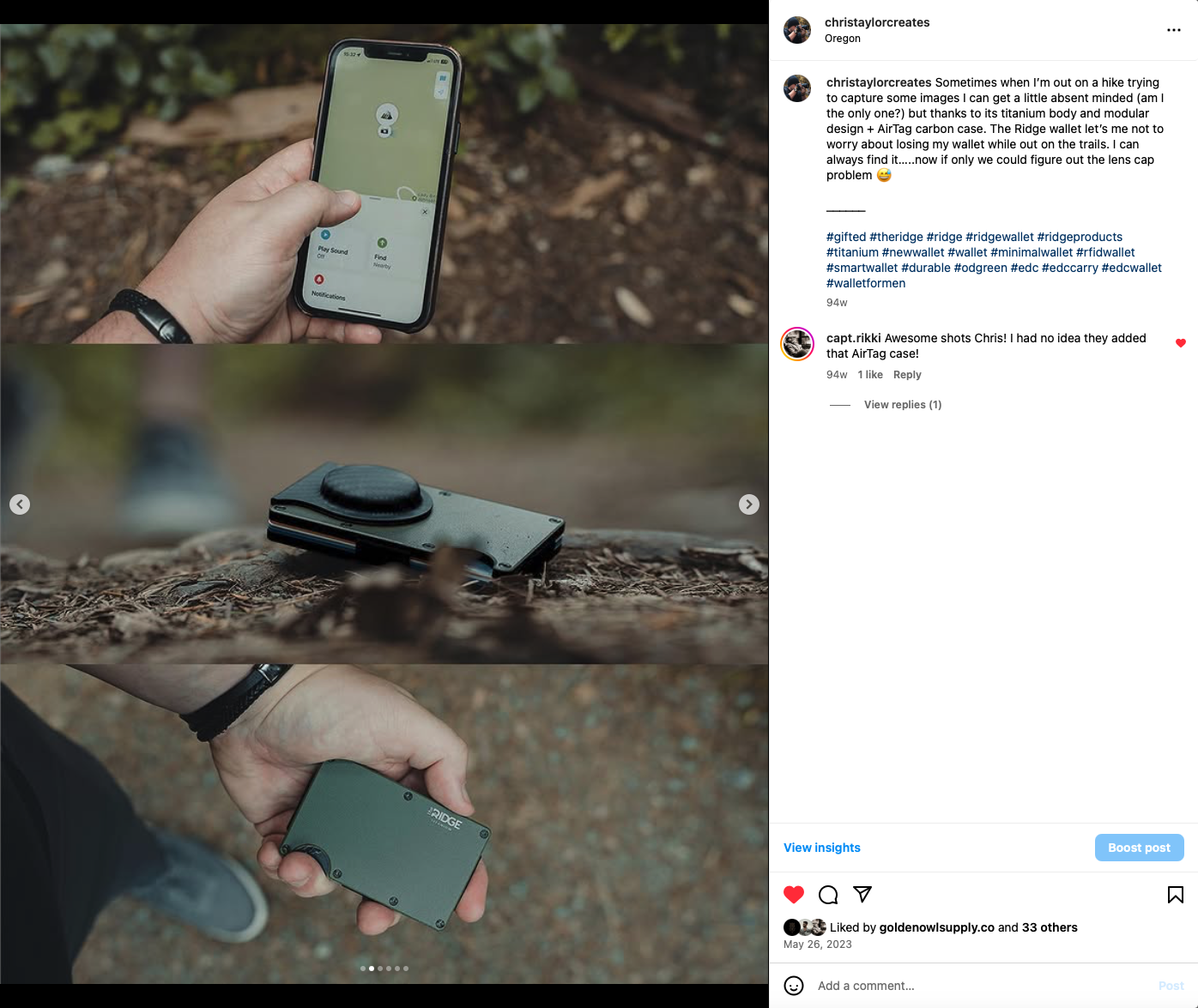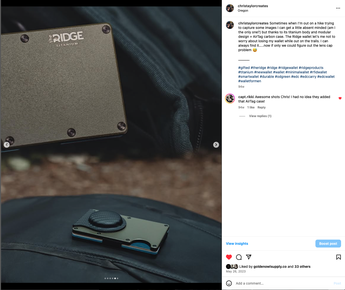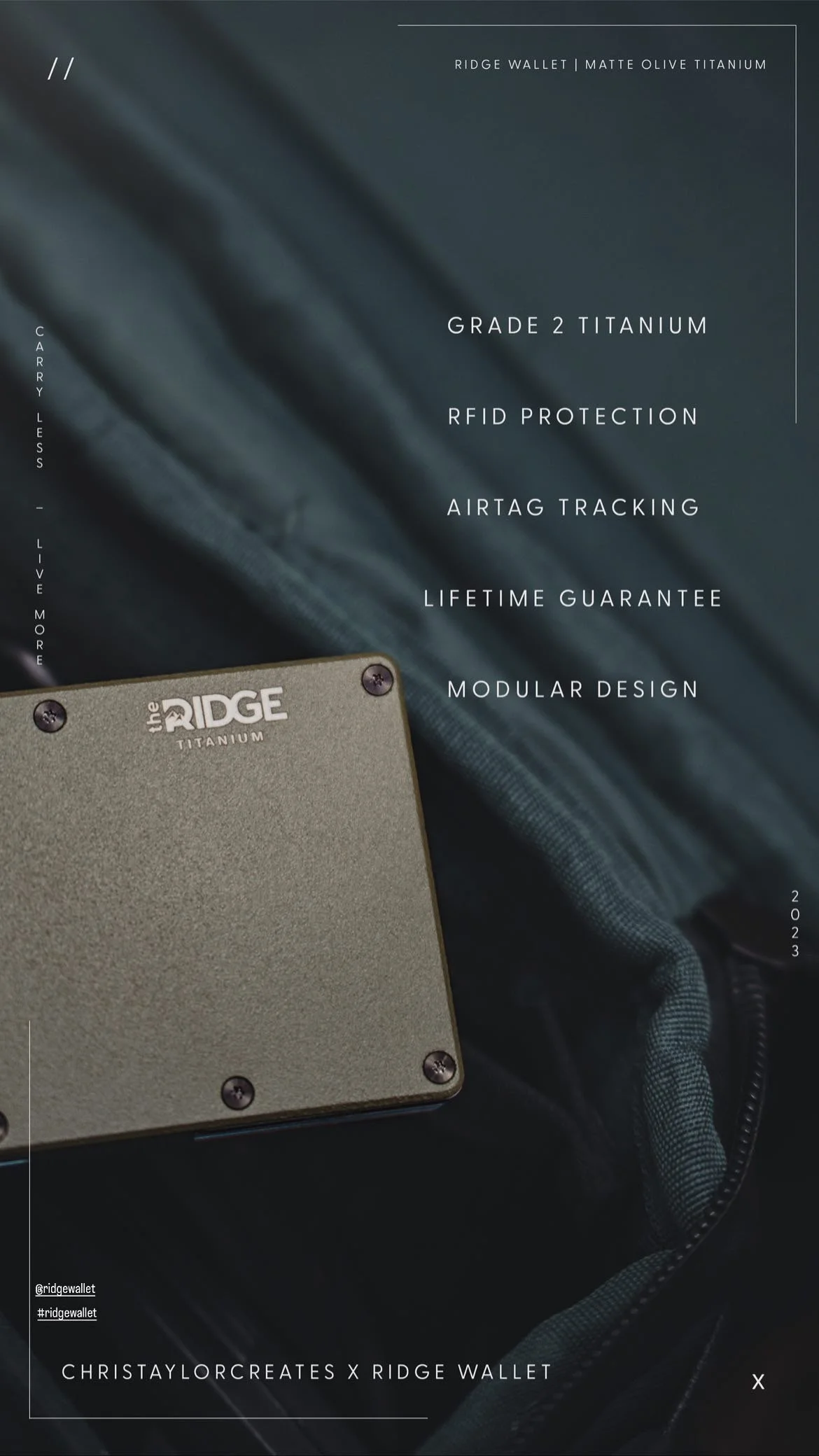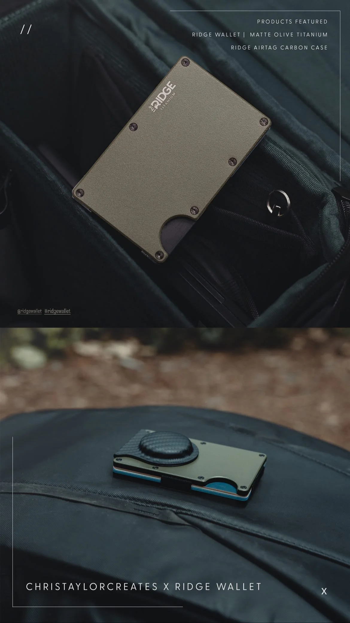 RIDGE is an US based company that is internationally known market leader for their innovative minimal wallet design and breakthrough into the EDC and travel markets. Ridge reached out looking to showcase their newly release (at the time) AirTag attachment for their main Ridge Wallet and showcase the Wallet in Matte Olive color scheme. The objective was to capture content for Ridge’s future social media, ad, and website use.